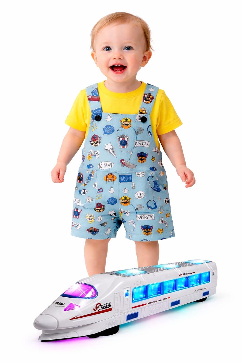Package Included : Dungaress, Toy Train With Light & Sound