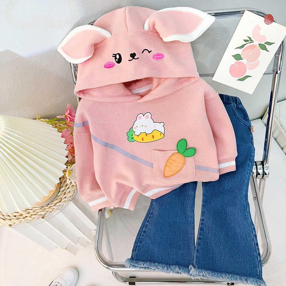 Kids Girls Full Sleeves Two Piece Set Hoodie With Jeans
